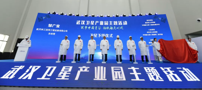5月13日上午9点20分,我国首条小卫星智能生产线所产首颗卫星在武汉国家航天产业基地卫星产业园下线,为见证这一里程碑时刻,在湖北省人民政府、航天科工集团有限公司的大力支持下,由武汉市人民政府、航天科工集团第二研究院主办,新洲区人民政府、航天科工空间工程发展有限公司承办的“筑梦中国星谷,扬帆航天时代”武汉卫星产业园主题活动隆重举行。