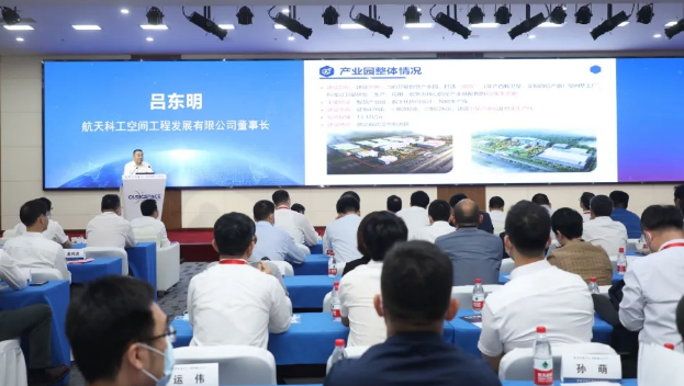 主题论坛上,武汉市新洲区区委书记赵利洪、航天科工空间工程发展有限公司董事长吕东明分别围绕航天产业基地建设情况、卫星智能制造技术发展等作主题汇报。