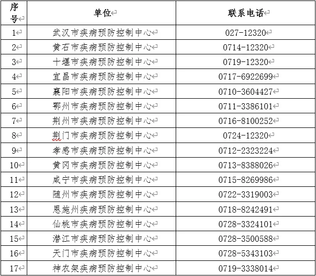 附:湖北省各市(州)疾控中心咨询热线