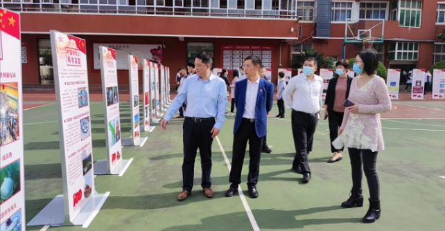 中国第一颗原子弹成功爆炸,在罗布泊升起了巨大的蘑菇云;中国第一颗氢弹空爆试验成功,研究人员在远处瞭望庆祝;唱着《东方红》飞出地球的中国首颗人造卫星——“东方红一号”…… 在5月20日“牢记初心使命 科技铸造强国——武昌区庆祝建党100周年系列活动之新中国科技成就展”巡展活动现场,生动详实的展览令嘉宾与学生屡屡驻足。