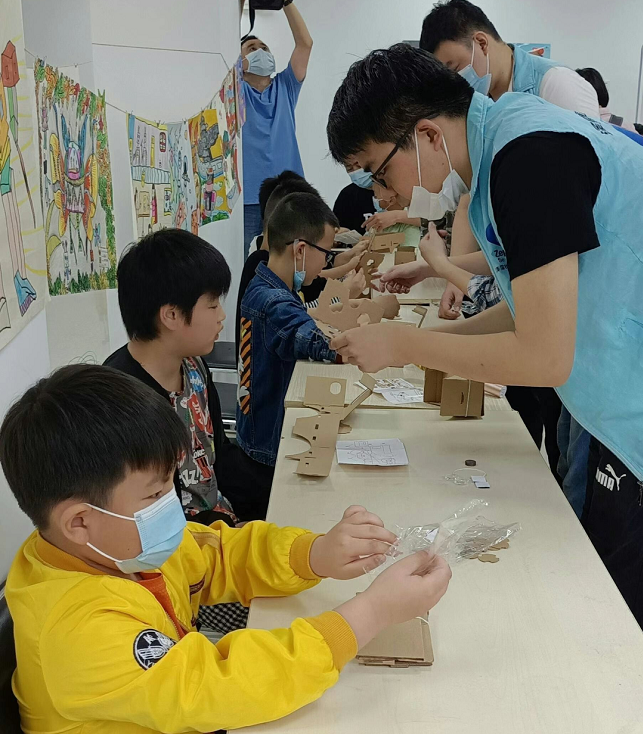 在VR眼镜制作环节,青少年们聚精会神听着社工讲解VR技术的原理和眼镜制作的相关步骤,在社工的一步步引导下,孩子们都制作成功,并现场在自己制作的VR眼镜里看起了动画,体验VR技术带来的奇妙感觉。