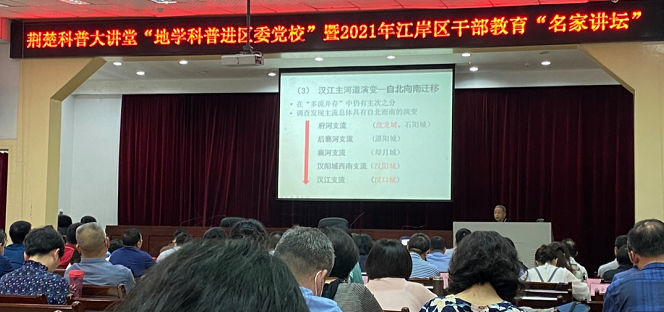5月14日上午,由湖北省地质局、湖北省科协普及部主办,湖北省地质科学研究院、江岸区委组织部、区委宣传部、区委党校、区科协承办的荆楚科普大讲堂“地学科普走进区委党校”暨2021年江岸区首期干部教育“名家讲坛”活动在江岸区委党校举行。