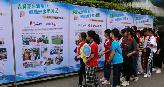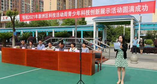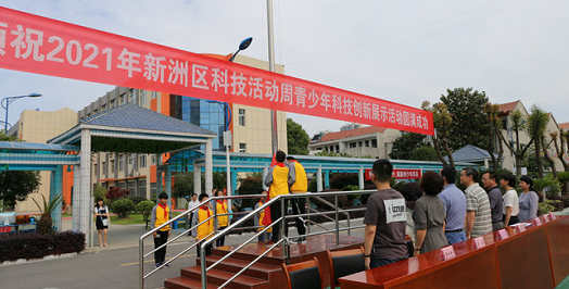 为全面贯彻党的十九大及习近平总书记在全国教育大会、两院院士大会中国科协第十次全国代表大会上的讲话精神,实施《全民科学素质行动计划纲要》,落实国家、省、市中长期教育改革和发展规划纲要相关要求,全面推进素质教育,不断提高青少年的科学素养、创新精神和实践能力,引领学生去发现和探究生活中的实际问题,进而提高创新能力和动手解决实际问题的能力。根据新洲区科技活动周组委会办公室下发的《2021年新洲区科技活动周——青少年科技创新体验活动方案》精神,围绕“百年回望——中国共产党领导科技发展”活动主题,2021年5月31日上午“2021年新洲区科技活动周青少年科技创新现场展示活动”在新洲区邾城街第四小学的校园里隆重举行。