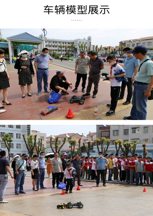 你看,选手们一脸认真地让车辆模型飞奔在规定的跑道上,带队的老师满脸的期待和鼓励,而“观战”的领导、老师和同学们也是看得兴致盎然。