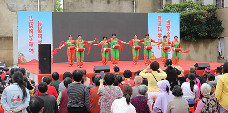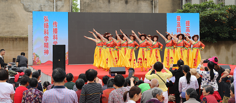 在建党100周年之际,为进一步推进科技创新成果和科学普及活动惠及于民,5月27日上午,由黄陂区科协、罗汉寺街道办事处联合主办的纪念建党100周年暨黄陂区2021年“科技活动周”科普进乡村文艺演出在钟岗村村委会百姓大舞台顺利举行。