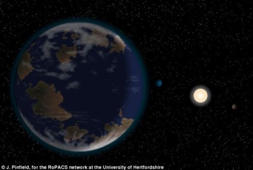 这颗行星的质量至少为地球的7倍,不过它围绕运行的距离和地球到太阳的距离相当,由于这就意味着它所接收到的光热量也应当和地球接收到的光照量相似。这就增加了其拥有宜居环境的可能性。