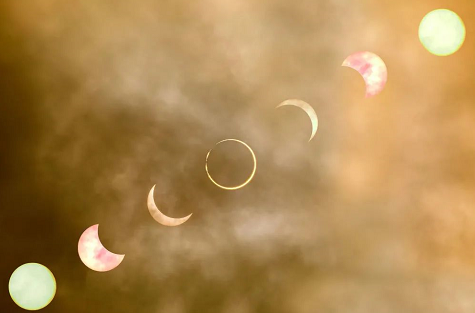 “日环食发生时,月球只遮住了太阳的大部分中心部位,露出一圈环状的太阳边缘,好似一枚亮闪闪的‘金指环’。”天津市天文学会理事、天津科学技术馆天文科普专家宋媛媛说。