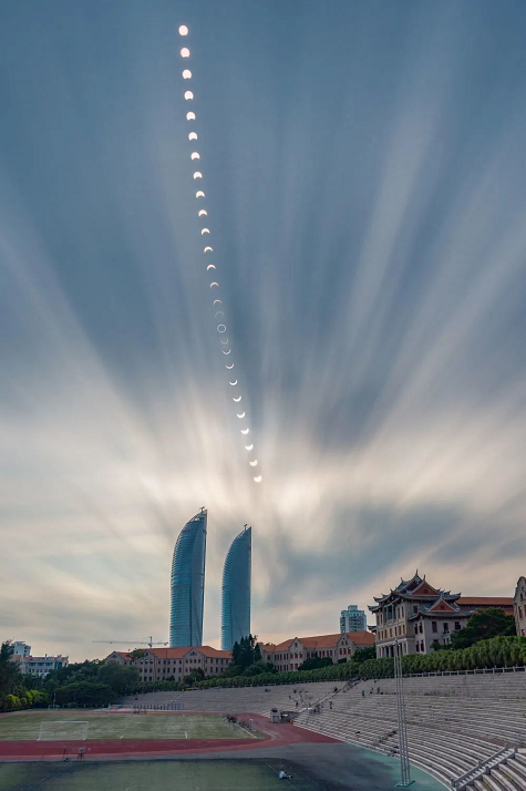 这是浙江省天文爱好者夏凯2020年6月21日在厦门拍摄的日环食照片