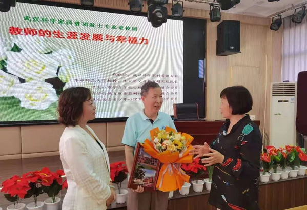 “双手五指依次对应敲击,拇指依次敲击四指,五指交叉抱拳,五指依次伸出握拳……”6月4日,2021年“院士专家进校园”活动走进武汉市江岸区黄陂路小学,华中师范大学教授郑晓边用一段手指操拉开科普讲座《教师的生涯发展与幸福力》的序幕。