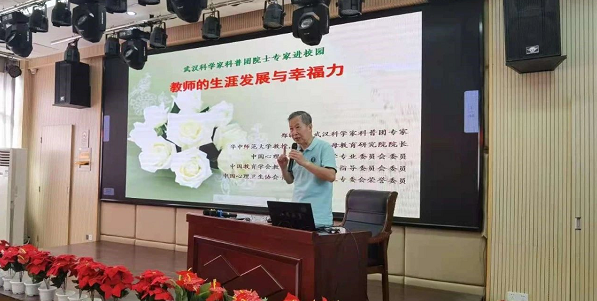“幸福不仅是感觉,更是一种能力,幸福是可以学习的。”郑教授结合自己的亲身体会和职业生涯的点点滴滴,用幽默风趣的语言,向在座的老师们分享了教师在面对职业生涯中出现的职业压力、 职业倦怠时应如何应对,以及如何提升自身幸福力。在他看来,一个富于爱心的老师远比一个知识渊博的老师更具魅力。