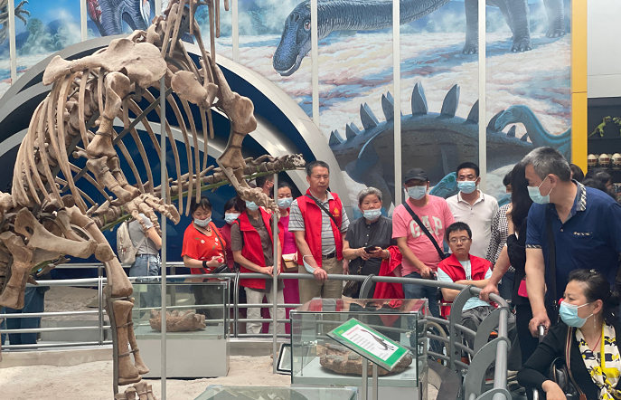 在博物馆二楼生命起源与进化展厅,9具恐龙化石及模型高高屹立,它们各具特色,各种形态栩栩如生,不断吸引着游客的眼球。仰望这些恐龙化石,让人仿佛进入了一个充满想象的世界:满洲龙悠闲地踏在草地上,属于海生爬行动物的梁氏关岭鱼龙偶尔跳跃于海面之上,其长度及保存完整程度堪称世界第一;凶猛的和平永川龙牙齿锋利,便于追捕、撕咬猎物;“娇小”的鹦鹉嘴龙,身长只有1米左右……仿佛让人置身于“侏罗纪公园”。