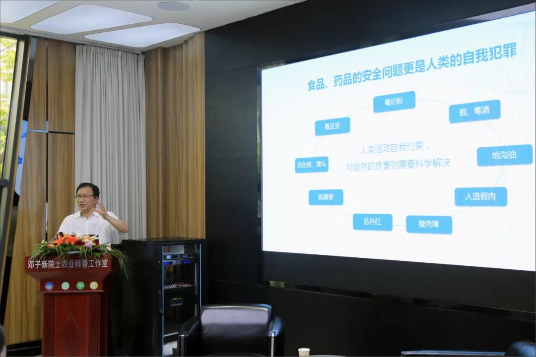 市科协网讯(记者 任文 摄影 刘炼)为充分发挥院士专家在推动农业科普事业繁荣发展、提升公民科学素质中的重要作用,积极服务乡村振兴战略,服务“三农”工作需求,6月11日上午,“邓子新院士农业科普工作室”揭牌仪式在武汉市农科院武湖北部园区举行。仪式后,“2021年农业科普大讲堂”首场开讲,中国科学院院士、武汉大学药学院院长、微生物学家邓子新,以《解码DNA》为主题作演讲。
