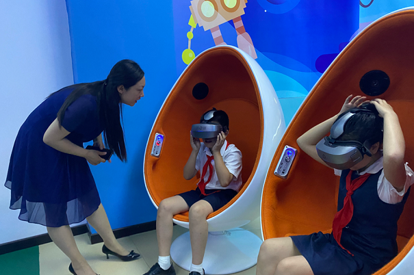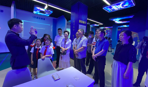 精彩的魔术互动和合唱表演后,大家一同走进桃源社区VR科技馆参观学习。