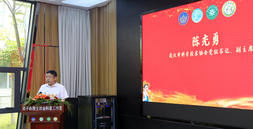 陈光勇致辞表示,近年来,充分发挥党和政府联系科技工作者的桥梁和纽带作用,弘扬科学精神,团结动员全市73位院士参与科学普及工作。今天,成立全国首个以院士领衔命名的农业科普工作室,希望动员吸纳更多的院士专家和广大科技工作者投身农业科普工作,持续打造特色鲜明的农业科普队伍,创新科普组织形式,增强科普服务功能,深入有效地向大众传播农业科学知识,为助力巩固拓展脱贫攻坚成果,全面推进乡村振兴,加快建设农业农村现代化,为建设现代化大武汉贡献力量。