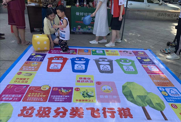 “塑料和玻璃是可回收垃圾,果皮要放进厨余垃圾里......”为了提高小朋友们“绿色低碳生活,加强环境保护”的意识,通惠社区组织了一场寓教于乐的科普活动,组织40名科普志愿者通过“垃圾分类飞行棋”的游戏,让社区内的小朋友们在趣味性极强的游戏中,了解关于垃圾分类的知识。现场有近百名的家长和小朋友参与到游戏活动之中,气氛十分热烈。同时科普志愿者们还在地面铺设“画布”,供孩子们进行涂鸦,使本已不具备任何意义的纸张,在小朋友们丰富的想象力和创造力中,变成一幅幅美丽的图画,真正传递出了“废物利用、低碳生活”的环保理念。