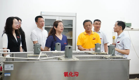 揭牌仪式结束后,阮荣雄一行带队实地考察和参观了学校有机垃圾资源化处理一体机、粉末活性炭再生炉等校企协同项目,以及相融检测实验室、环境与生物工程实验分中心实验室和静思湖水生态治理示范项目。