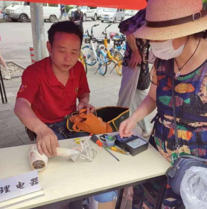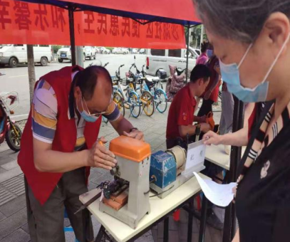 活动伊始,“爱心磨刀”便将此次便民服务活动推向了高潮,前来体验磨刀服务的业主一拨接着一拨。除了“爱心磨刀”的便民服务,“爱心理发”便民活动更是吸引了好多爷爷奶奶来理发,已经理完发的几位老人一边互相打量着新发型,一边开心地向理发服务人员道谢。在便民缝补区,一位未留下姓名的居民,也自发加入了便民服务的工作队伍中,现场熟练地使用起缝纫机器,缝缝补补。另外还有“爱心补鞋”“爱心配钥匙”“爱心修理”等便民服务为居民提供服务。