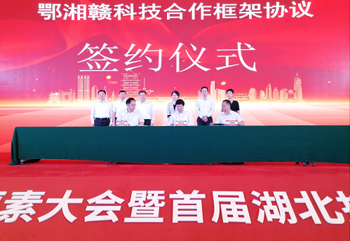 6月23日,“长江科技创新要素大会暨首届湖北技术成果交易会”在汉成功举行。会议以“汇聚科技创新要素 建设高质量技术交易市场”为主题,鄂湘赣三省科技部门共同签署了《长江中游鄂湘赣三省区域协同创新合作框架协议》(简称《协议》),凝聚鄂湘赣三省协同发展的强大创新力量,加速技术、人才、资本等创新要素在长江中游城市群聚集融合,共同打造长江中游城市群协同创新共同体。会议还同步举行了“鄂来创”科技创新要素展示区巡展、“鄂来拍”专利成果竞拍交易专场、“鄂来揭”企业技术需求揭榜挂帅专场、“鄂来投”技术投融资活动、湖北省技术交易大厅开通、湖北知识产权证券化启动、长江中游城市群首届技术经纪人大赛启动等重点活动。