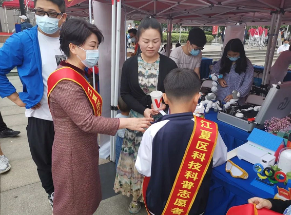 吴建国与区科经局、区科协、区宣传部共同为活动启幕,并为江夏区教育局、卫生健康局、农业农村局、中铁科工装备公司四支科技科普志愿服务队和四名科技科普志愿者代表进行了授旗、绶带,表彰科技模范,弘扬志愿精神。