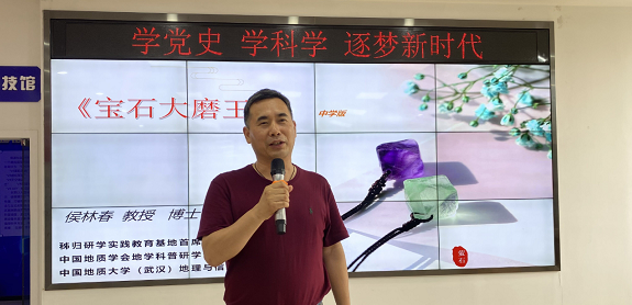 科普部部长彭竹春、江岸区科协主席罗玉清、台北街道工委书记李名文、江岸区科协副主席冯崇坚等领导出席了本次开营仪式,本次活动也邀请到了中国地质大学(武汉)的侯林春教授为现场的四十二位小营员们授课,开讲《宝石大磨王》课程并进行网络同步直播。