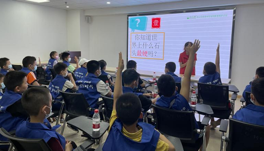 来自游品慧青少年科普教育实践服务平台的老师高钰琰为社区的青少年儿童们带来了有趣的宝石科普知识,现场高钰琰老师详细的讲解了宝石是如何形成的,什么宝石,如何辨别宝石。并通过有奖小问答的形式加深孩子们对宝石科普知识的理解和认识。