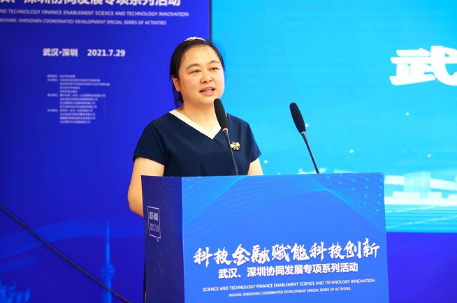 为了深化科技金融产品和服务创新,进一步拓宽科技型企业融资渠道,促进科技成果转化。7月29日下午,以“科技金融赋能科技创新”为主题的2021武汉、深圳协作发展专项系列的第一场活动,在武汉和深圳同步举行,两地通过视频直播的方式为技术创新公司提供金融工具、机构、市场和金融技术综合系统;也通过武汉和深圳的协同发展,展示在新时代背景下,政府、高校、资本和企业如何有效地对接促进科研成果从产品化到产业化再到商业化发展落地,利用科技金融产品和服务创新,进一步拓宽科创企业的融资渠道,促进技术成果的转化。