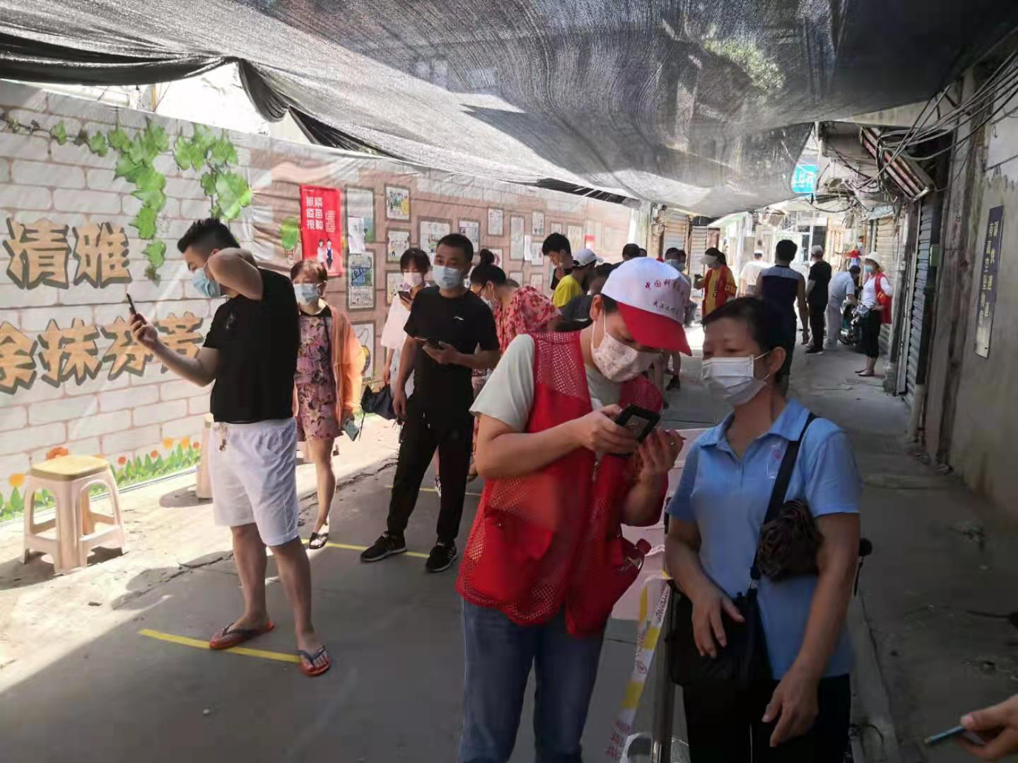 “天气炎热,戴着口罩更热,我们多跑两趟,居民就能更快的完成检测。”市科协下沉党员张黎,正在忙着进行人员登记。“请还没有做核酸检测的居民,前来检测点进行核酸采样”从前天到岗后他一直忙着在小区喊话,通知居民去做核酸检测,确保不落一人,今早清晨又赶到社区协助登记。