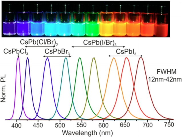 使用钙钛矿量子点发光材料制作的显示屏,具备发射光谱半峰宽窄,颜色可调,色域广等优点,这些独特的优点无论是对日常生活还是工业生产中产品设备的升级换代,都将起到强力的推动作用。