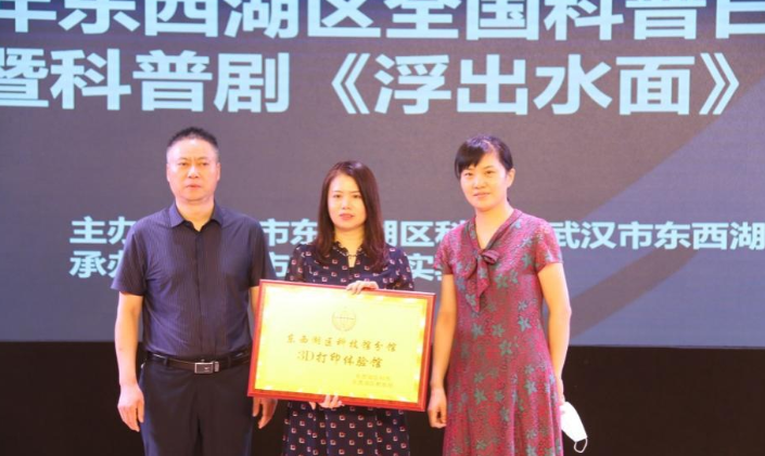 随后,东西湖区科协副主席黄文丽和区教育局副局长陈良俊为东西湖区科技馆分馆——区实验小学3D打印体验馆授牌,区科协主席戴晓春宣布2021年东西湖区全国科普日活动启动。