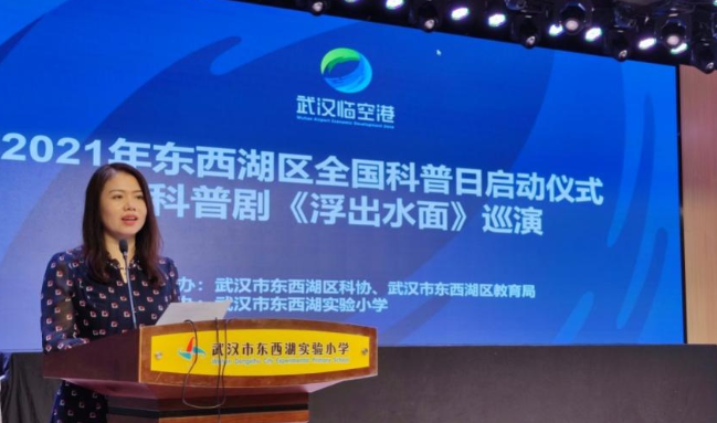 9月9日上午,由东西湖区科协、区教育局联合举办的以“百年再出发,迈向高水平科技自立自强”为主题的“2021年东西湖区全国科普日启动仪式暨主场活动”在武汉市东西湖区实验小学拉开帷幕。区科协主席戴晓春,区教育局副局长陈良俊,区科协副主席黄文丽、黎兰献,部分学校的科技老师及学生共计400余人参加本场活动。