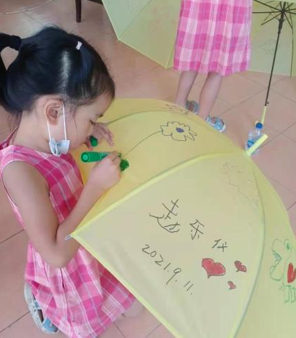 活动开始,由老师们向孩子们讲解了绘伞的方法和思路,社区志愿者们帮孩子们撑开小伞,鼓励孩子们放开想象,在小伞上尽情挥洒。孩子们在老师和家长的帮助下,绘制出一把把漂亮的小伞。