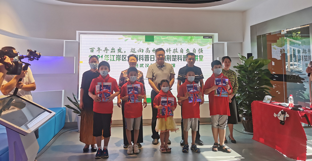 湖北省科协科普部陈玉芬,科普部部长彭竹春,武汉市节水办副主任龚敏红参与活动,并在现场向5名青少年代表赠送节水科普图书。