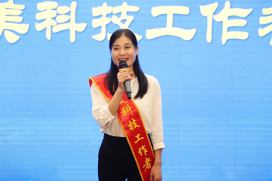 青山区委副书记、区委政法委书记雷利军,区人大副主任董俊,区人民政府副区长周斌,区政协副主席刘韧给青山区10位“最美科技工作者”代表、10位“科普五好”代表授绶带。