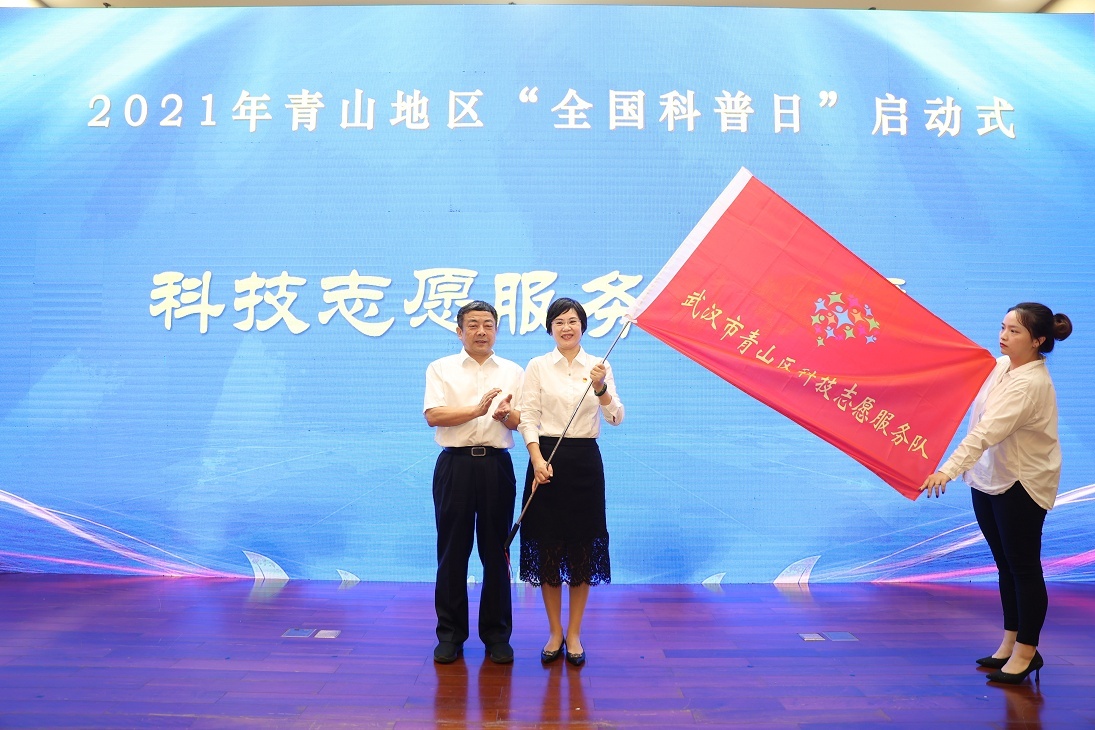 随后,党组书记、副主席陈光勇给青山区科技志愿服务队授旗,并为武汉三源特种建材有限责任公司“专家科创工作站”授牌。
