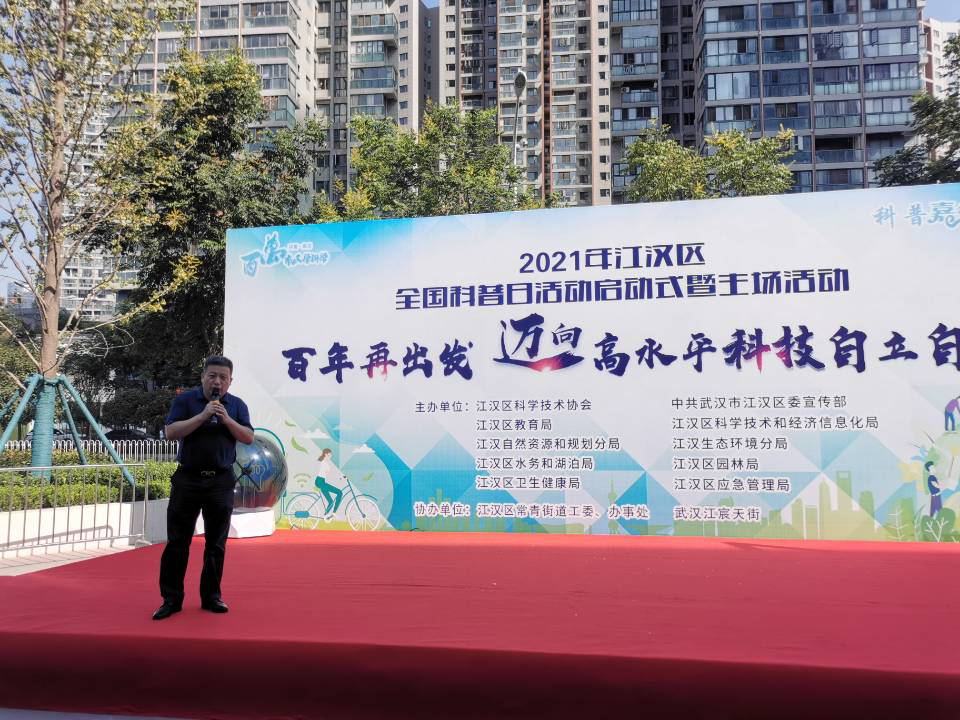 区委副书记、政法委书记陈红山宣布2021年武汉市江汉区全国科普日正式启动。