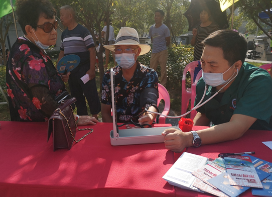 “以前血压高吗?”在区人民医院展台,叶医生一边询问老爹爹!一边动作熟练的为老爹爹,戴上臂带,在肘窝内摸到肱动脉,将听诊听头放在肱动脉上打气测压。看着结果,叶医生告诉老爹爹血压正常,以后要继续注意,马上继续为下一位服务。区人民医院的相关人员告诉记者,他们一直坚持义诊活动,也通过发科普手册等帮助居民建立健康饮食的观念,普及血糖控制等基本知识。