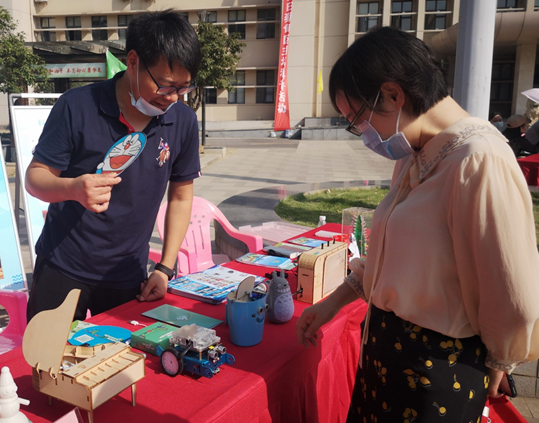 在区教育局展台,刘女士正拿着一只龙猫爱不释手的欣赏着,这居然是3D打印制作出来的,“学生通过3D设计软件,设计出所需要的3D模型,再通过3D打印机进行打印出来,一般一件作品通过打印机打出来要5到6小时的。”何洪高告诉记者。而在现场,区教育局也布置了全区中小学校科技科普活动成果宣传展板、发放科普资料,同时展示了科技科普活动机器人比赛实物、学生创客及3D打印作品等实物,向社区群众宣扬新时代科学知识和科技创新成果,引导群众树立科技助力教育、创新强国的新思路。