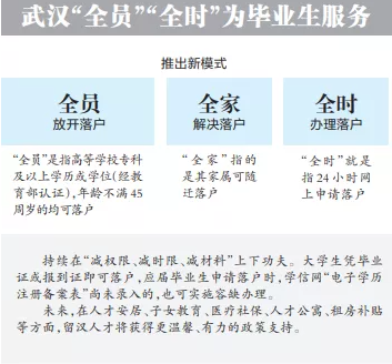 在全国同类城市中,武汉快人一步,是最早放开落户限制、实施人才落户“零门槛”的城市,户籍制度改革被列为第一批全面创新改革经验,向全国推广。