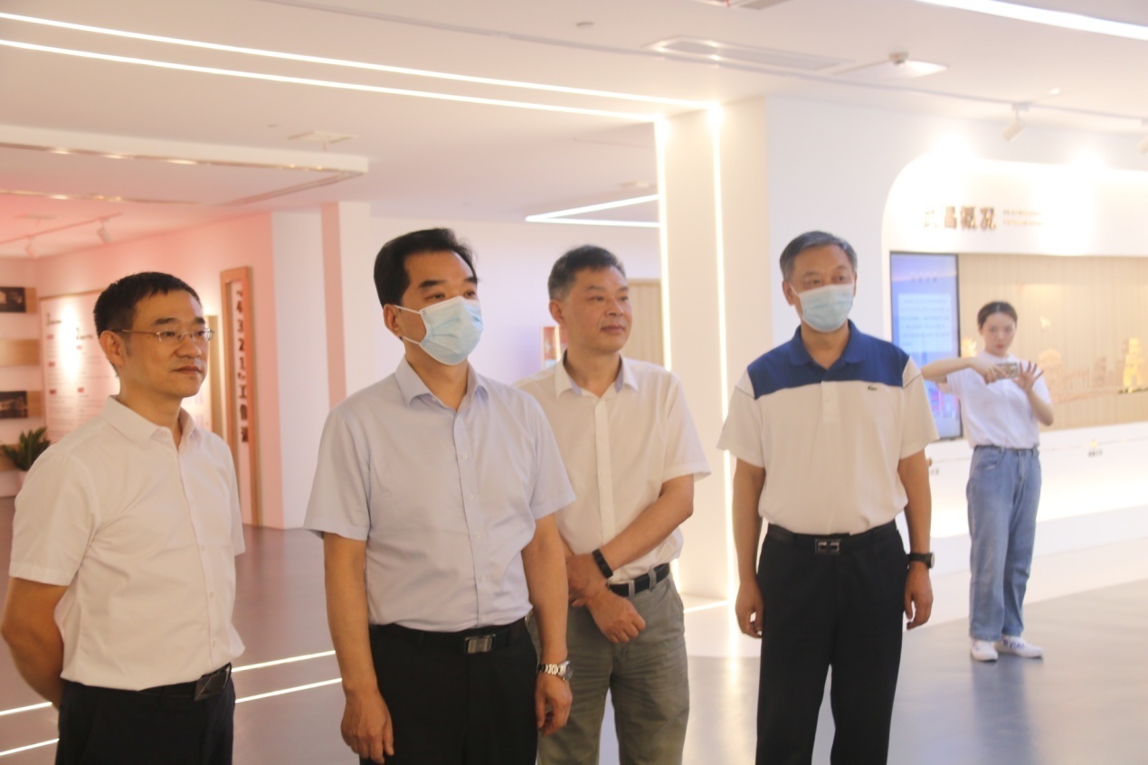 图为启动仪式结束后,与会领导和嘉宾实地参观武昌区科技创新展示中心。