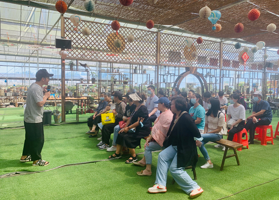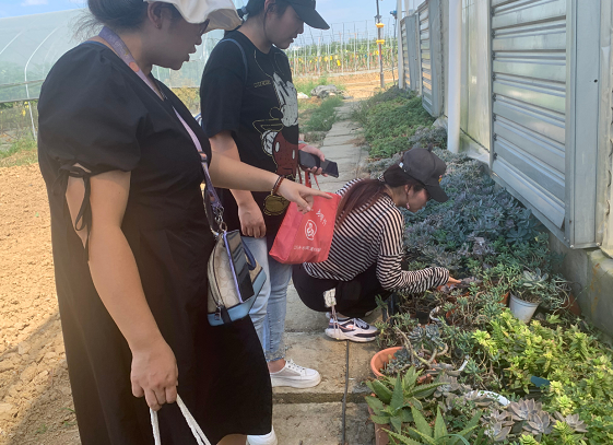稍作休整后,一行人来到自勇园艺科普基地参观学习。大棚里的多肉,千姿百态,众彩纷呈。“这些红色、绿色的多肉太好看了吧,我怎么就养不活它们呢?”“到底怎么样才能养的这么好看啊?不是应该很好养吗?”……代表们一进入大棚,就被眼前的多肉植物吸引了目光,接连发出问号。