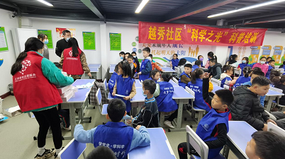 越秀社区是目前江岸区面积最大的新兴社区,具有浓郁的人文氛围,常住人口12000余人,居民以中青少为主,多为高学历、高素质人群,特别是社区居民共享1200平米新时代文明实践所配套场所,社区依托现有资源组建了一支由社区书记牵头充满活力的科技志愿服务队,在“全国科普日”“科技周”期间积极开展多主题系列科普志愿活动。江岸区科协为在全区社区科普工作中树立标杆,近日组织中国地质大学游品慧科普团队,走进越秀社区开展科学探秘营活动。