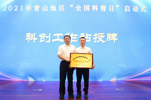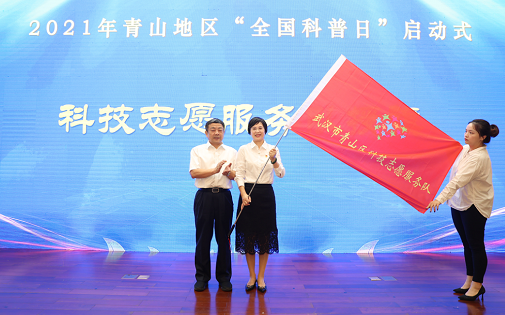 随后,党组书记、副主席陈光勇给青山区科技志愿服务队授旗,并为武汉三源特种建材有限责任公司“专家科创工作站”授牌。