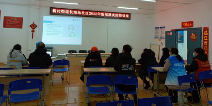 为更深入推进社区新冠疫情防控工作,普及社区工作人员疫情防控知识,2月10日上午,长湖地社区邀请新村街道卫生服务中心医护工作人员,在社区文化活动室开展新冠疫情防控知识讲座。医护人员详细讲解新冠肺炎防控知识,普及社区疫情防控基本常识,重点讲解了什么是新冠肺炎、社区工作人员如何做好自我防护、社区工作人员如何指导居民做好防护等内容,向社区工作人员传递了“防控病毒,从我做起”的必要性和重要性。听完讲座大家对疫情防控工作又有了更深刻的认识,在做好自身防护的同时,加强教育宣传力度,引导居民群众提高自我防范意识,为打好冬春季新冠肺炎疫情防控战筑牢坚固防线。