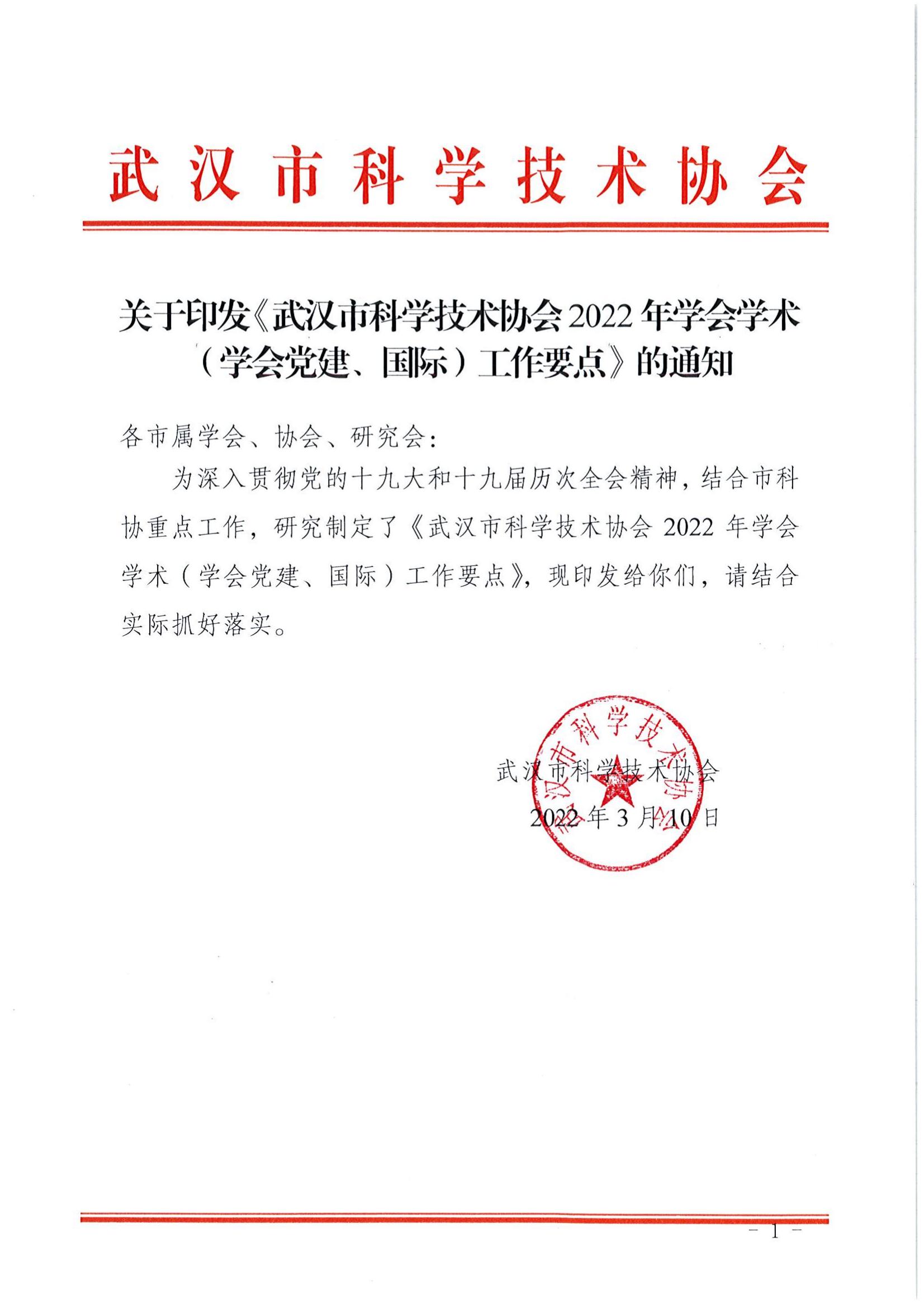 关于印发《2022年学会学术(学会党建、国际)工作要点》的通知
