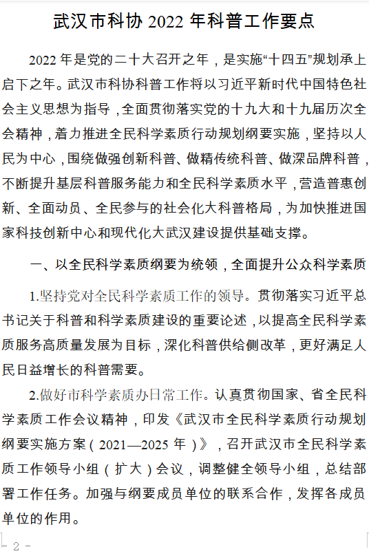 关于印发 《2022年科普工作要点》的通知