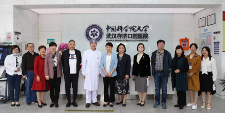 随后,调研组一行到中国科学院大学武汉存济口腔医院调研,由医院副院长王林虎对医院科协所做的科普工作进行简要介绍。王院长介绍到,医院近年来大力开展科普工作,主动筹备资金建设口腔健康科普教育基地,积极动员组织医护工作者参加科普讲座、科普大赛,制作科普视频、科普图书,其中“河马医生”、“快板之口腔科普”获得市、区科协的认可,获评相关奖项。