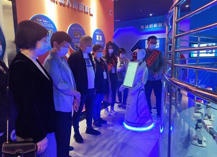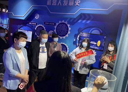“欢迎来到杨汊湖社区机器人科技馆,我叫小雪。下面,由我引导大家参观体验。”在机器人“小雪”的引导下,调研组一行参观体验了社区科技馆的机器人乐团、机器手、书写机器人等智能科普设备,了解了社区科技馆对提升辖区未成年人科创意识发挥的巨大作用。在杨汊湖社区,调研组一行还调研了社区的青少年创客空间、智能阅读中心、科普e站等智慧化科普阵地的建设,各位委员纷纷称赞,对街道社区积极打造辖区青少年科创启蒙基地表示肯定。