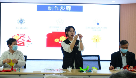 “我今年70岁了,和小徐是几十年的同学、同事和闺蜜,两家关系一直非常好,后来因为拆迁我搬走5年,现在刚搬回武锅,就赶上社区这个‘5·20’爱的表白活动。感谢社区,让我借这个机会,和小徐一起做手工,一起说说心里话。”家住武锅社区时代花园小区的姜诗琼师傅开心的说到。