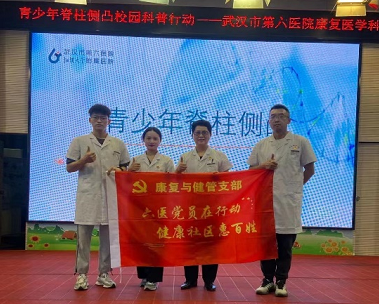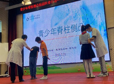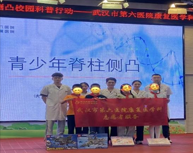 近年来,青少年脊柱侧凸发病率在我国居高不下,严重威胁青少年身心健康和未来发展,影响到国家人才培养的质量,已成为继肥胖症、近视之后危害我国儿童和青少年健康的第三大“杀手”!借即将到来的六一国际儿童节,5月23日下午,武汉市第六医院康复与健管党支部所在科室志愿团队在黄烈弥主任带领下来到江岸区新村小学,为近100名四、五年级孩子上了一堂生动有趣的科普小课堂。