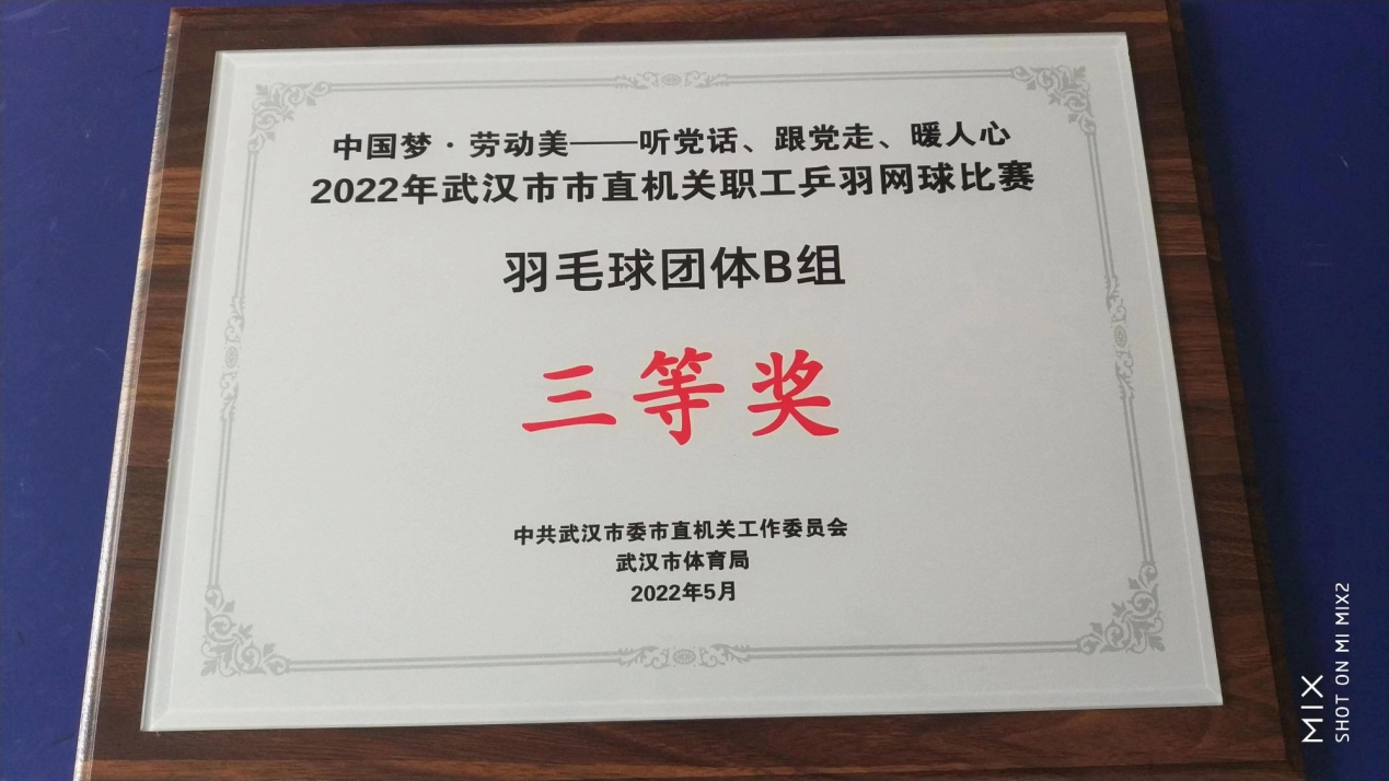 市科协网讯 5月28日、29日,市科协联合武汉科技馆组队参加了“中国梦·劳动美——听党话、跟党走、暖人心”2022年武汉市市直机关职工乒乓球和羽毛球比赛。队员们在比赛中敢打敢拼、顽强拼搏,充分展现了新时代科协系统干部职工团结协作、奋勇争先的精神面貌。其中,羽毛球项目取得了历史性的突破,市科协在62支队伍参加的羽毛球团体B组比赛中,取得了第四名的佳绩,获得三等奖并升入团体A组。通过此次比赛,进一步增强了科协系统干部职工的荣誉感和责任感,促进了身心健康,营造了创优异成绩喜迎二十大的浓厚氛围。